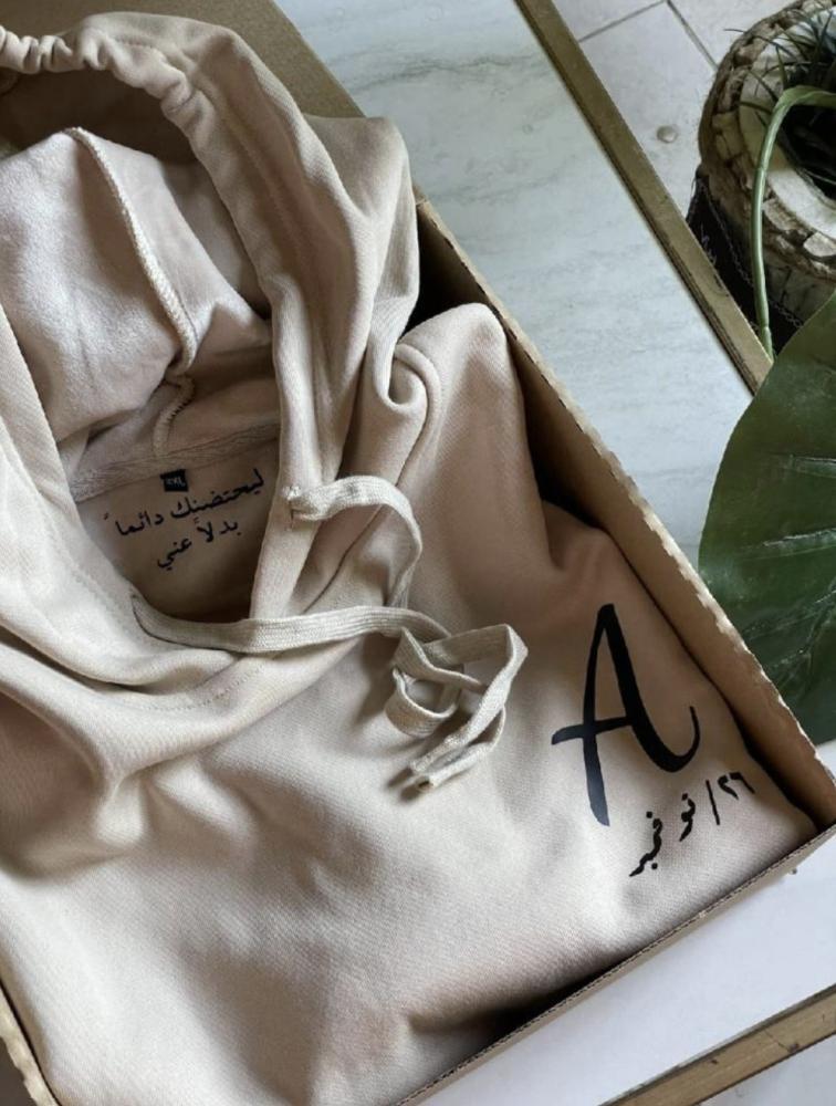 تخصيص الهودي: تقدر تختار تغليف خاص مع كرت برسالة منك، أو تغير الرسالة المكتوبة داخل الهودي حسب رغبتك