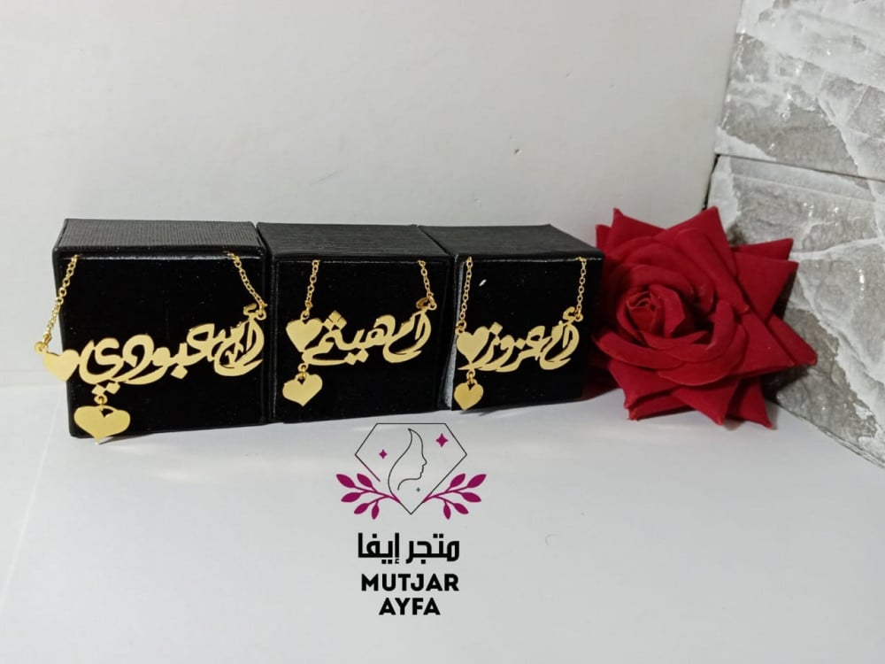 معلومات المنتج:مطلي ذهب عيار 21 قيراط.يمكنك تخصيص أي اسم أو كلمة (عربي أو إنجليزي).متوفر ذهبي أو فضي.ضمان سنتين على اللون من متجر إيفا .سمك 0.7 مم.تأتي داخل علبة هدايا بسيطة